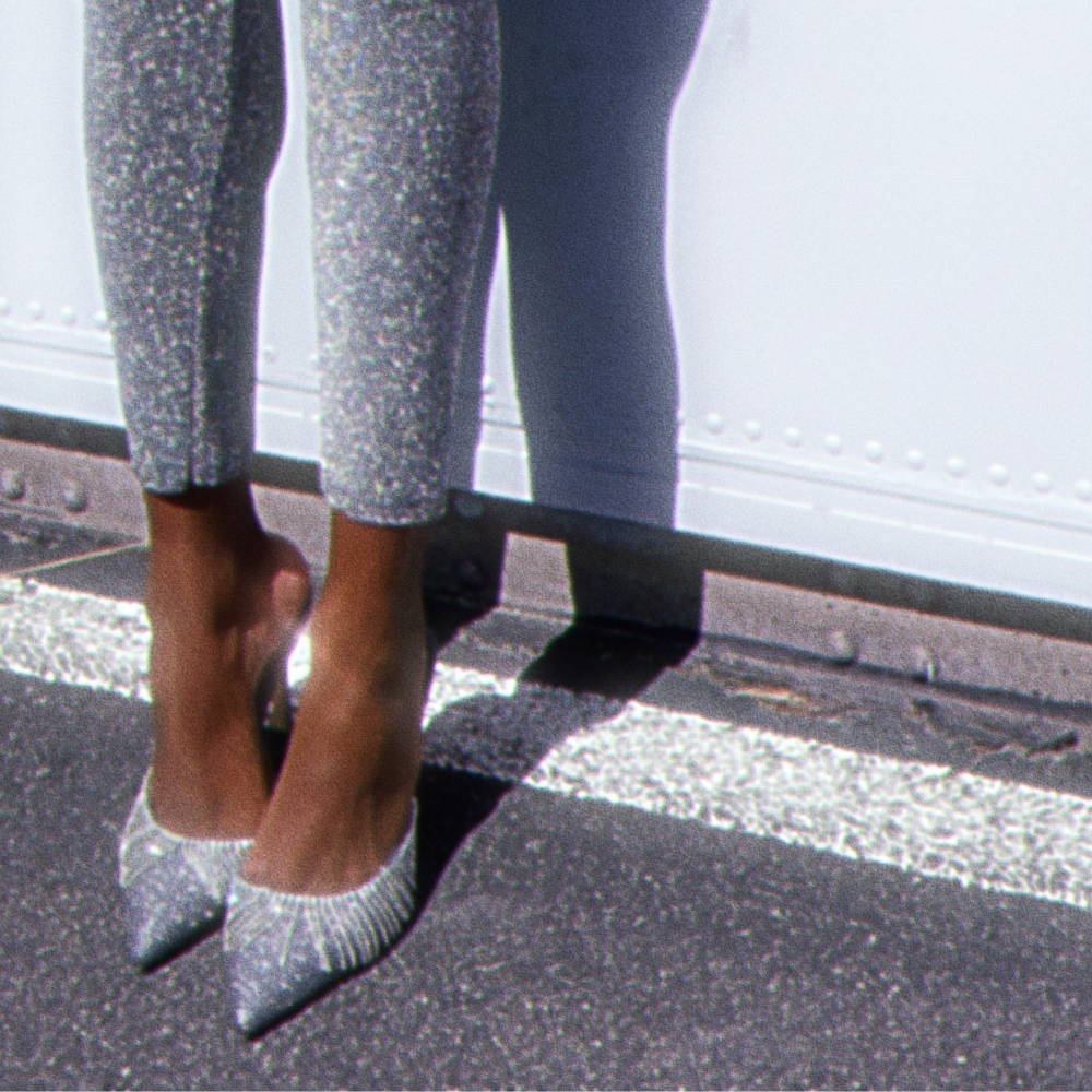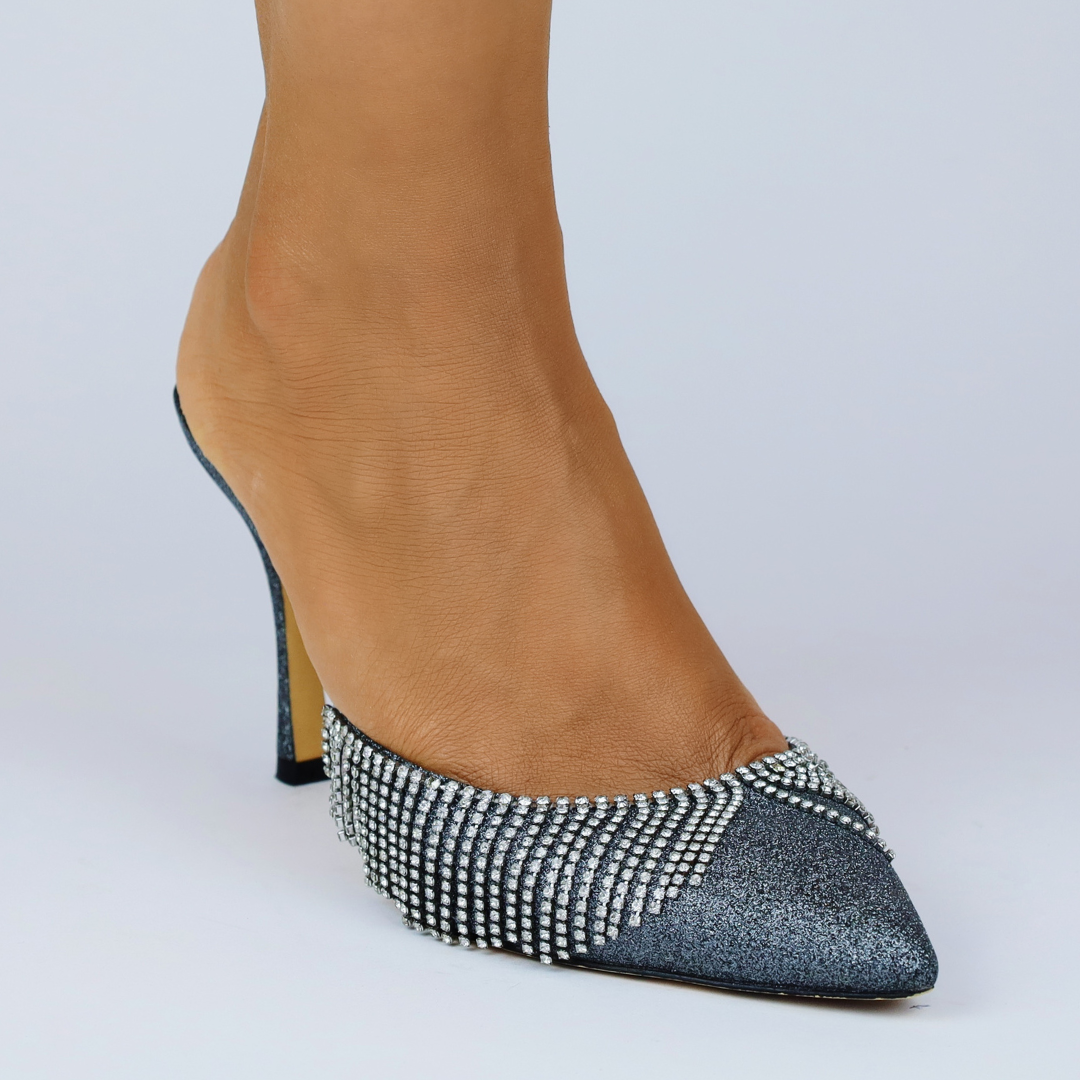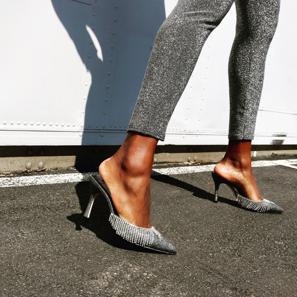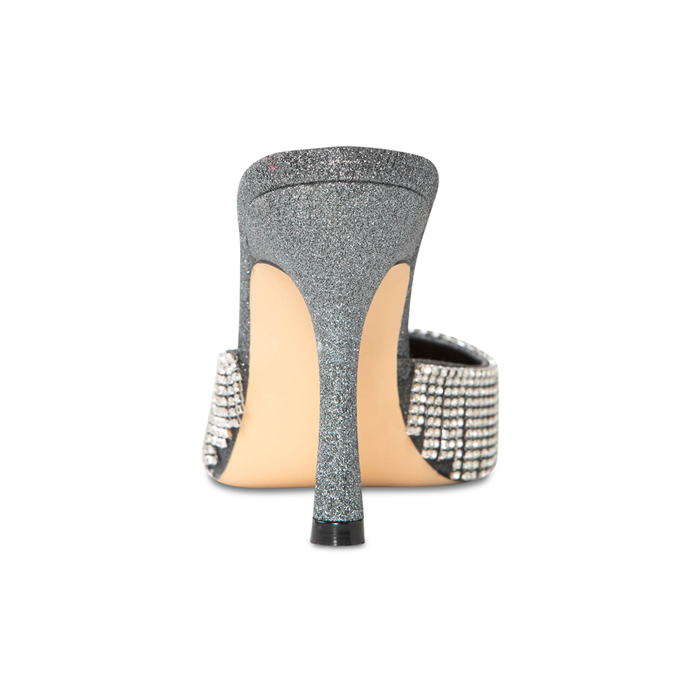 Introducing 'Catherine Pewter' vegan mule. The season's "it" shoe with a cruelty-free twist. Our 'Catherine' mules feature a sparkly pewter finish, detailed with dangling rhinestone fringe.Â