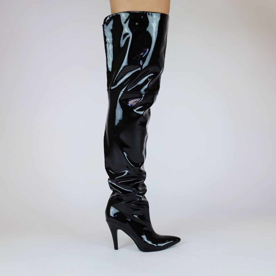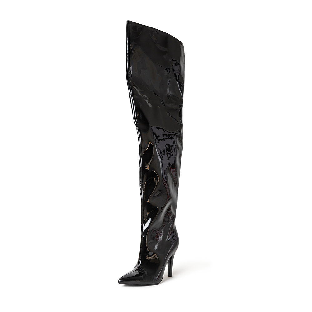 Introducing Jane, our very first boot design, inspired by the legendary Jane Fonda—a symbol of strength, style, and activism. Crafted in sleek patent vegan leather, these sexy thigh-high boots command attention with their striking silhouette and high-shine finish. Designed to make a statement, Jane is the ultimate power piece for those who dare to stand out.