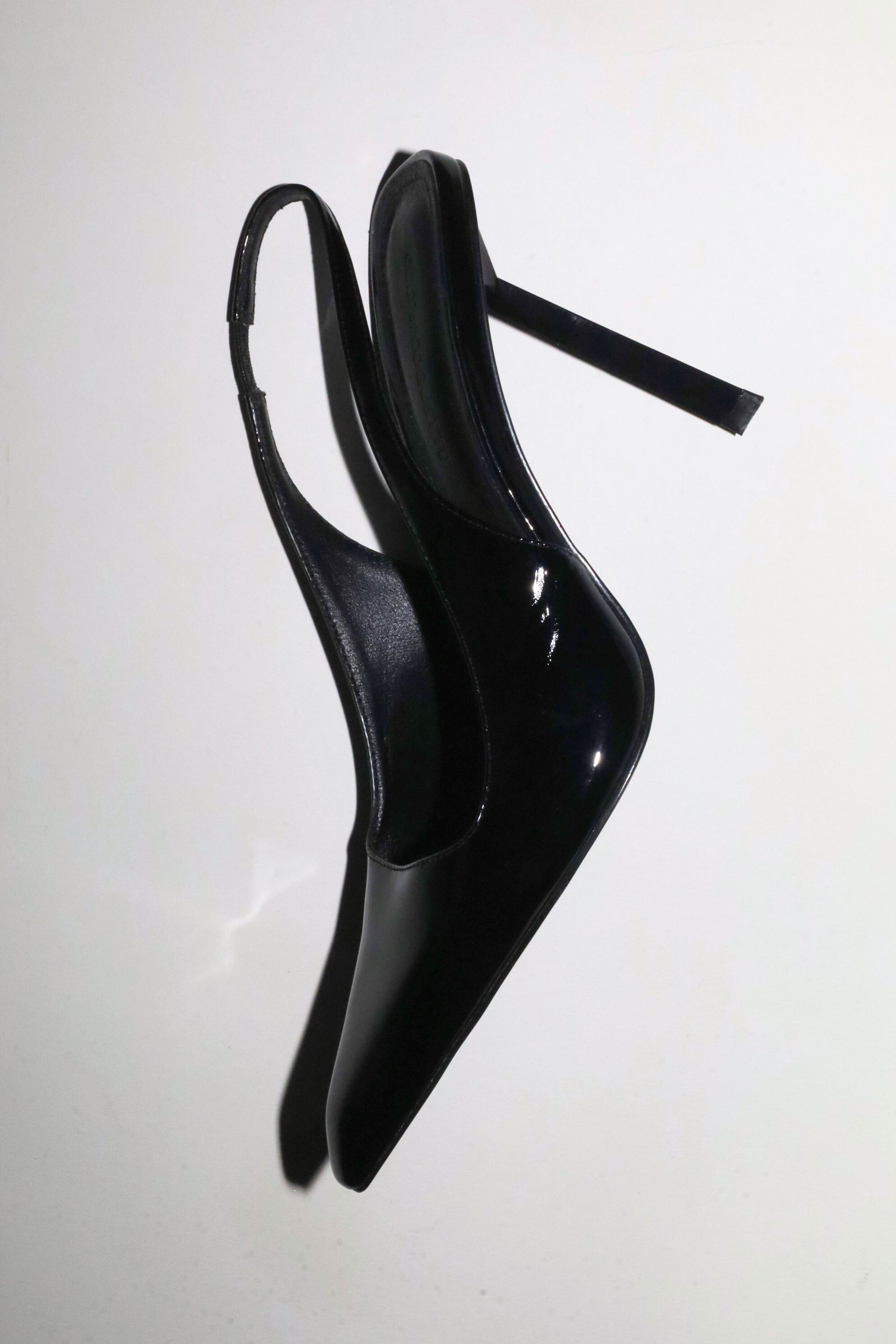 Meet Stella, the slingback that does not play small. Cut in a high-shine black patent, she’s sleek, razor-sharp, and unapologetically polished. The sculpted vamp curves up the foot for a modern, elongated silhouette, while the slim slingback strap keeps everything minimal and secure. And that stiletto heel? Pure confidence.